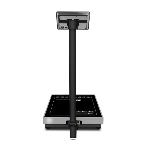 Результаты взвешивания и расчетов отображаются на LCD-дисплее. Экран надежно закреплен на металлическом каркасе. Это увеличивает прочность конструкции. Табло закреплено на складной стойке. Функция регулировки высоты не предусмотрена. LСD-дисплей содержит 16 разрядов для индикации. Он показывает массу товара, цену за 1 кг и стоимость покупки.